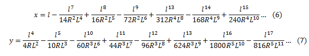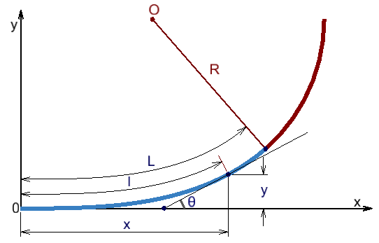 A similar calculation procedure is used to define the rectangular coordinates of the Clothoid, starting from the Clothoid’s deflection angle, θ = l²/(2RL).