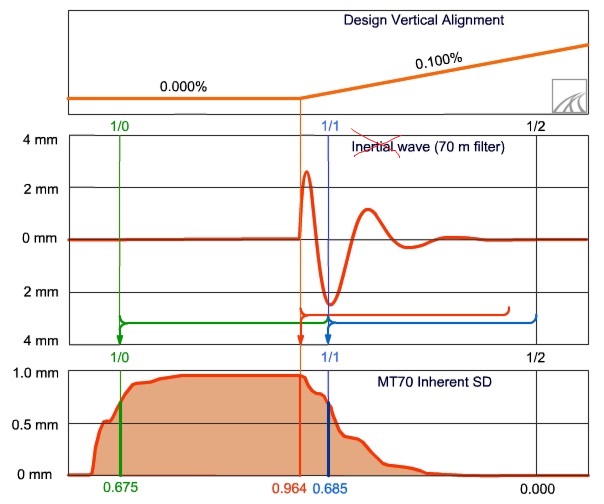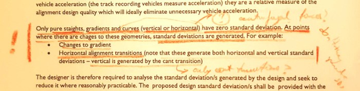 I started to dig for information in a database of standards and I discovered a few old documents that provided a bit more light into the issue of what the TGSD Calculator magically does. These documents tell stories about track recording vehicles recording vehicle accelerations and that any irregularity is an unnecessary acceleration. The advice given to the designer was to adjust his design to eliminate the unnecessary vehicle acceleration caused by his/hers design. And the story tells that the TGSD Calculator can actually show you where those unnecessary accelerations are.
