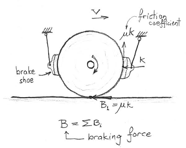 As with the others, this force also depends on speed – mainly due to the speed variation of the friction coefficient (μ) for various brake systems (the forces K that trigger the friction are generally the same):