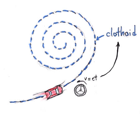 If you drive a car with constant speed and rotate the steering wheel at a constant rate, you will draw a clothoid.
