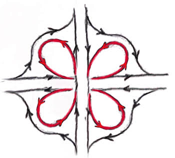 From all of them, the one defined by Bernoulli was of interest to the alignment designers of the past, because it was providing an elegant solution to the steering problem encountered designing the loop mentioned above. Bernoulli’s lemniscate looks like this: